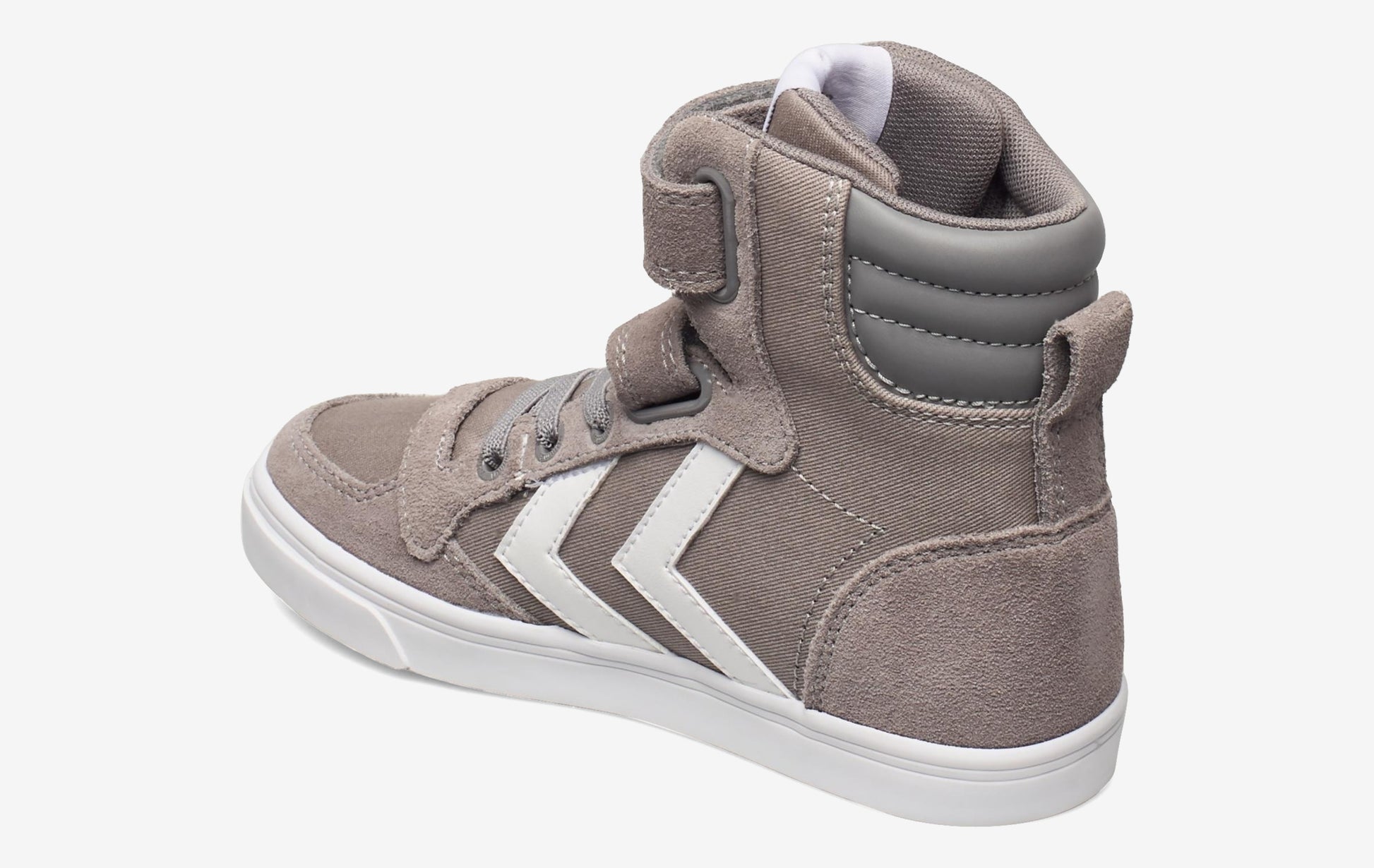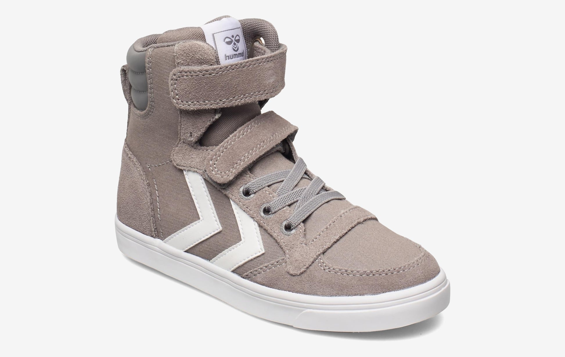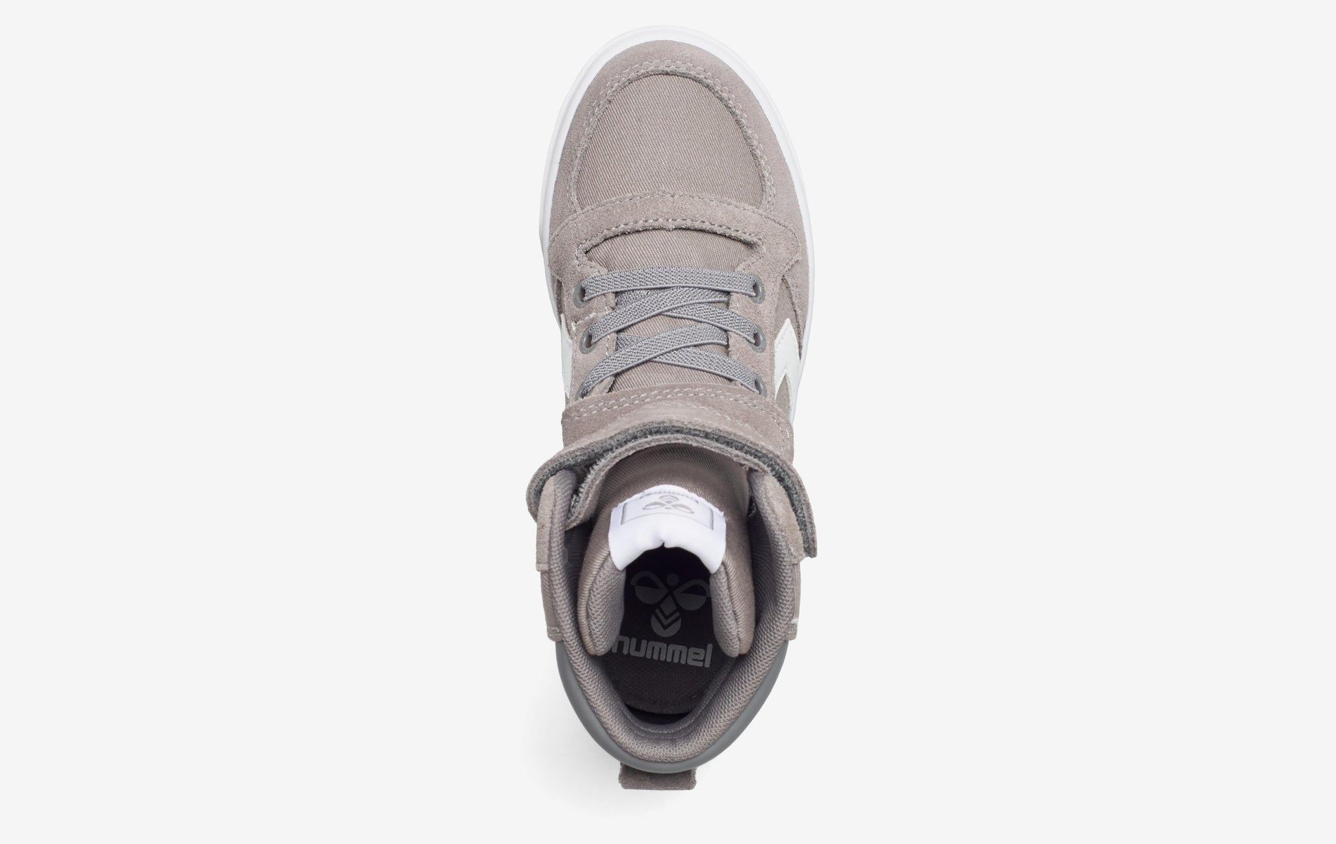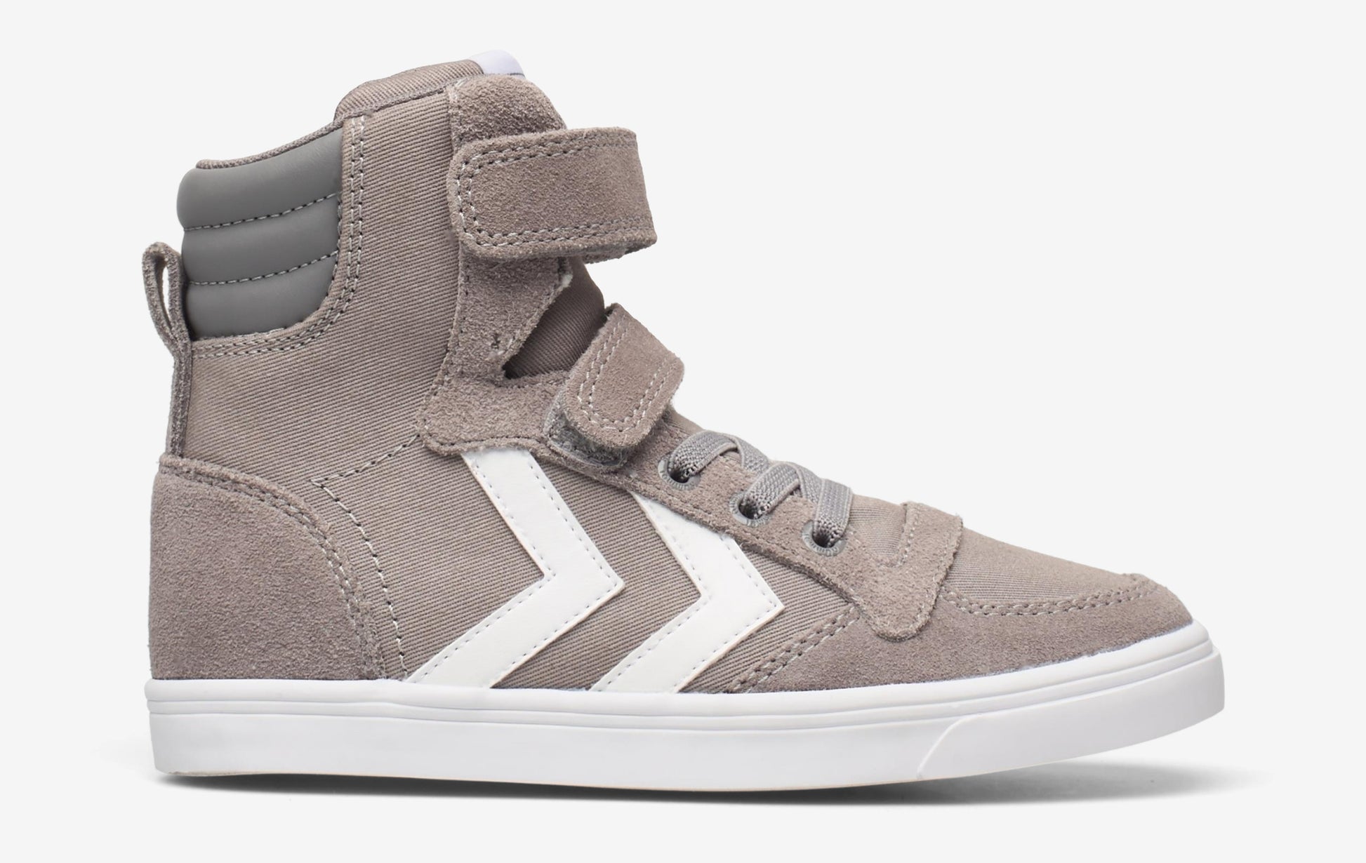 The SLIMMER STADIL HIGH JR is a classic high-top sneaker for kids. It features a robust vulcanized outsole and a classic canvas and suede upper. The Velcro fastener and elastic laces make it easy for toddlers to put on and take off the shoes. The low-cut silhouette provides high comfort.