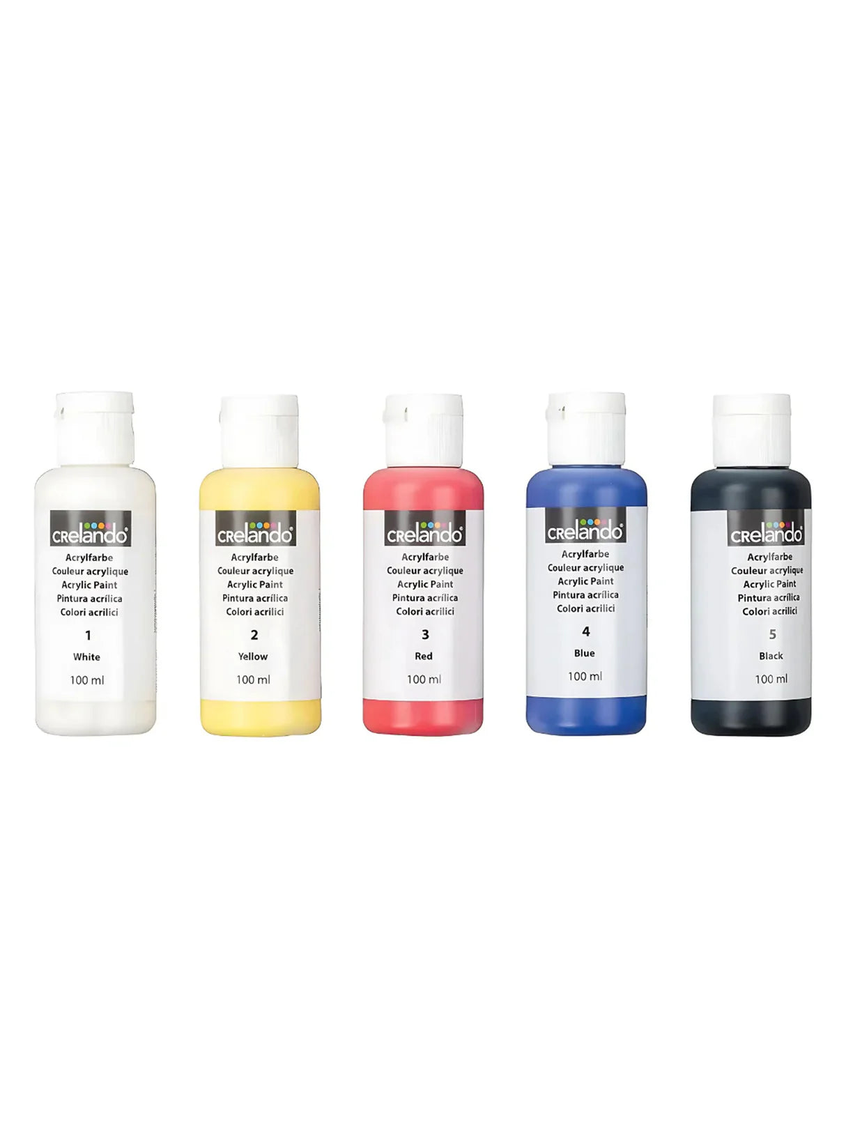 Acrylic Paint Set of 5 colors (White Yellow Red Blue Black), 100ml Each, Fast Drying
