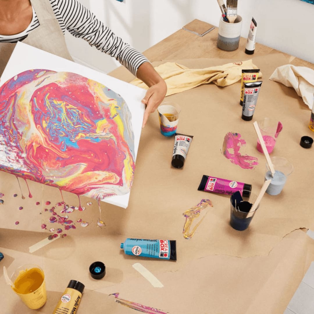 250 ml of Pouring Medium and 3 x 100 ml of acrylic paint