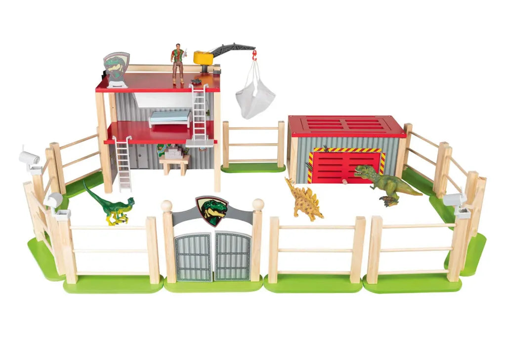 Dinoland 26-piece dinosaur enclosure wooden toy creative play