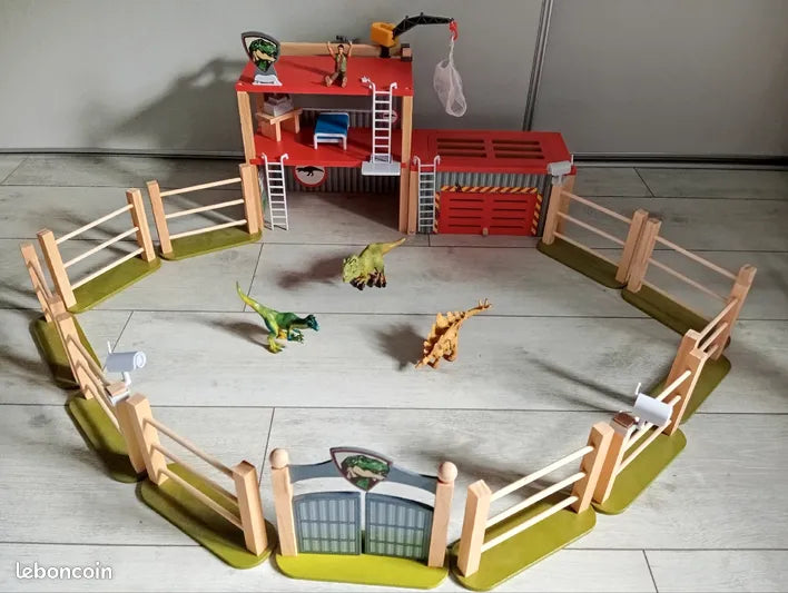 Large Dinoland and research station made of wood with lovingly printed details