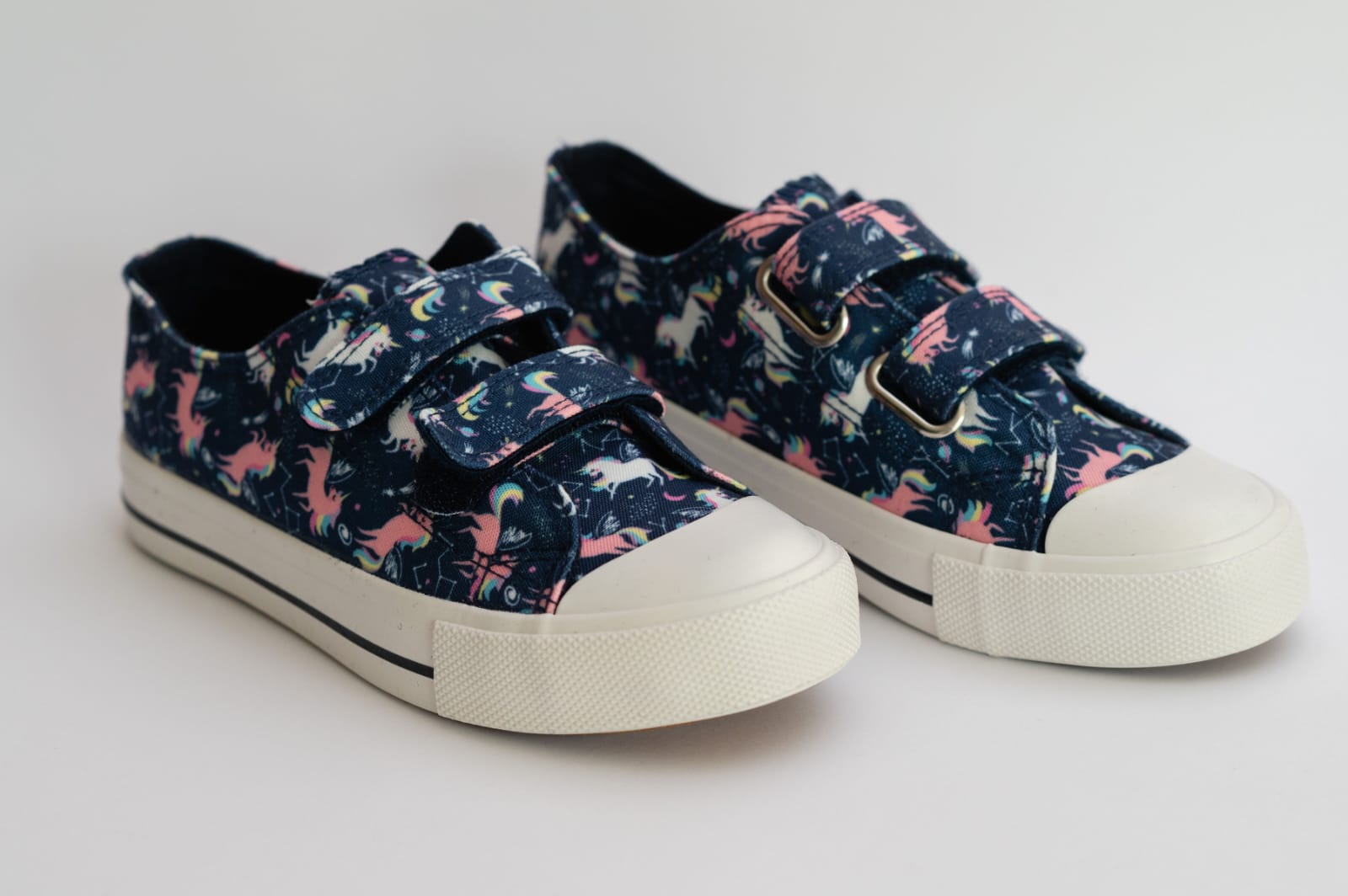 Velcro fastening, raised rubber at the front to prevent digging in.