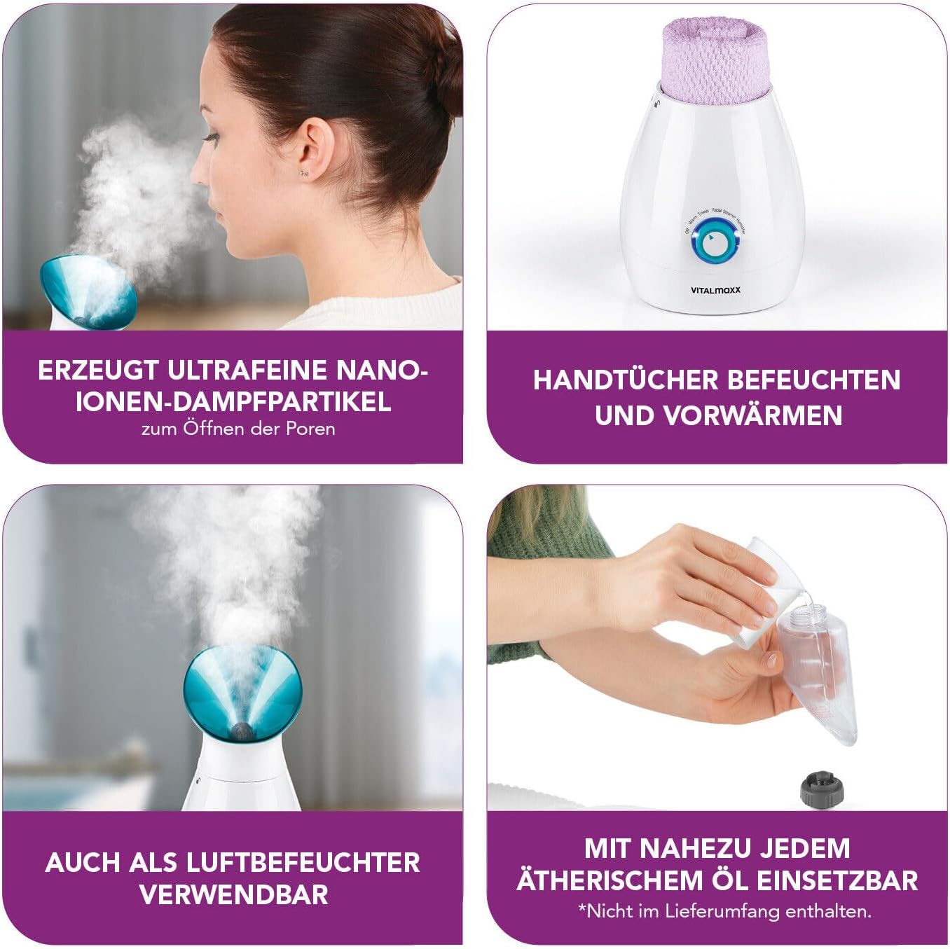 - Special features: can not only be used as a steam face sauna, but also as a high-quality towel on warmer and as a great humidifier especially in cold seasons with refreshing essential oils is highly recommended